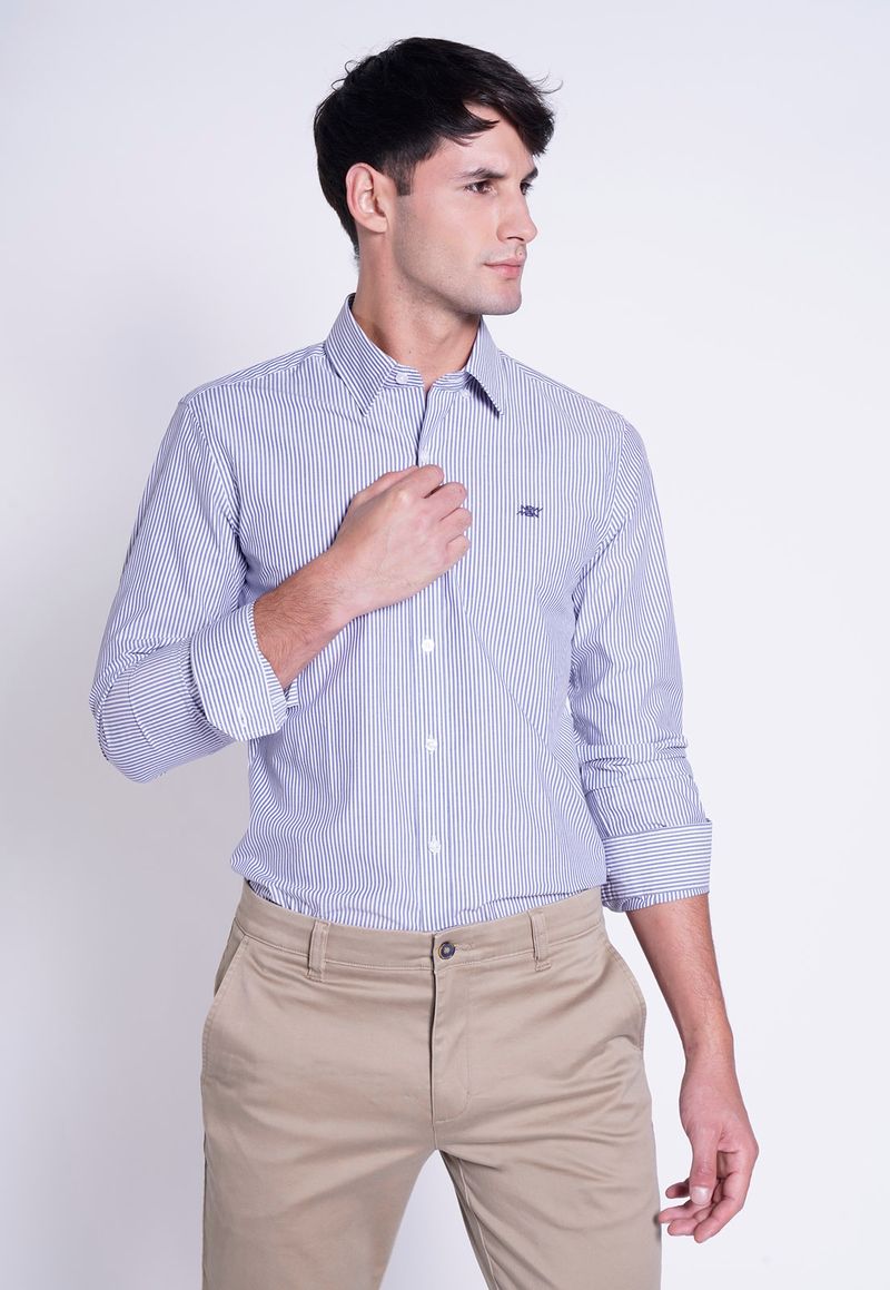 Camisa manga larga li´nea de la Heritage, 100% algodo´n premium en tela raya candela con proceso “Easy Iron” (planchado fácil). Modelo de calce slim, cuello con botón oculto, delantero con botonadura tapeta y bordado en pecho. Disen~o limpio y minimalista, ideal para usar en cualquier ocasio´n con jeans o pantalo´n de tela. Disponible en un color.