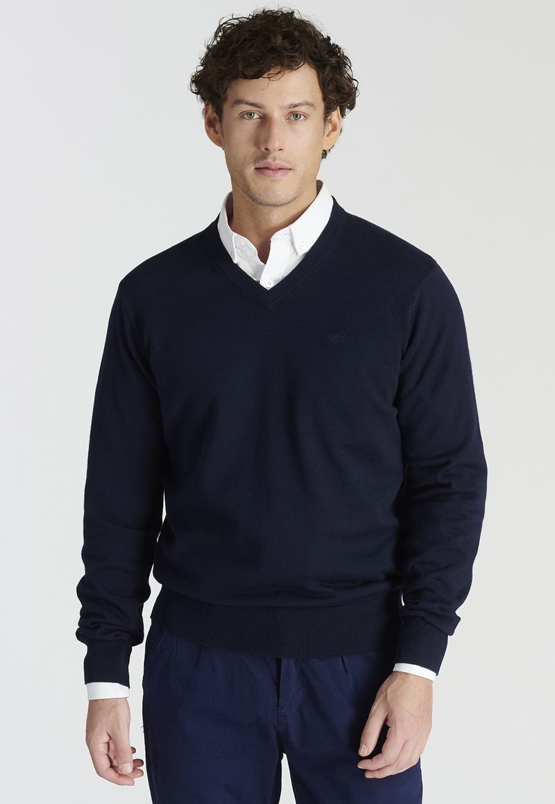 Un sweater cómo y fácil de usar que te acompañará en el invierno urbano. Modelo de manga larga de la líea Heritage, confeciconado en algodón y cachemira. Diselo de calce regular en punto liso, cuello en V e interior del cuello con cinta con logo New Man. Disponible en 6 colores.